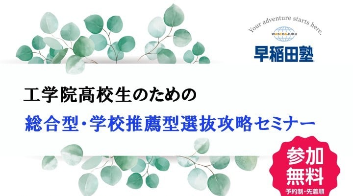 「総合型選抜・学校推薦型選抜(AO入試・推薦入試)について詳しく知りたい!」「今から何を準備したらいいの?」などの高2・高1生の疑問を早稲田塾のスタッフが解決します。(オンライン対応可能)