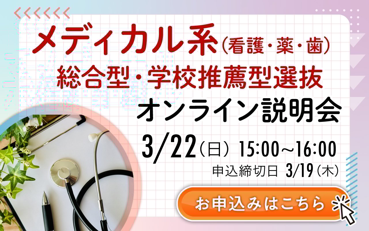 私大 総合型・学校推薦型選抜で合格実績No.1を誇る早稲田塾が、メディカル系の総合型選抜を徹底解説!実際に合格した先輩の出願例なども交えながら、総合型選抜に向けてやるべきことをお伝えします。