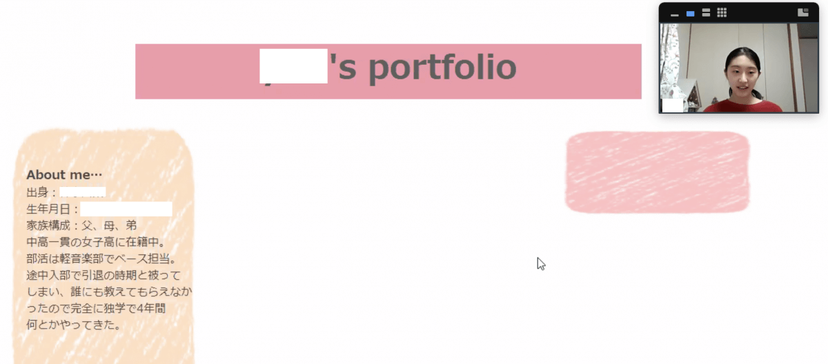 また、塾生たちはそのまま中間発表!現在作っているポートフォリオサイト(自己紹介サイト)を発表しました。
