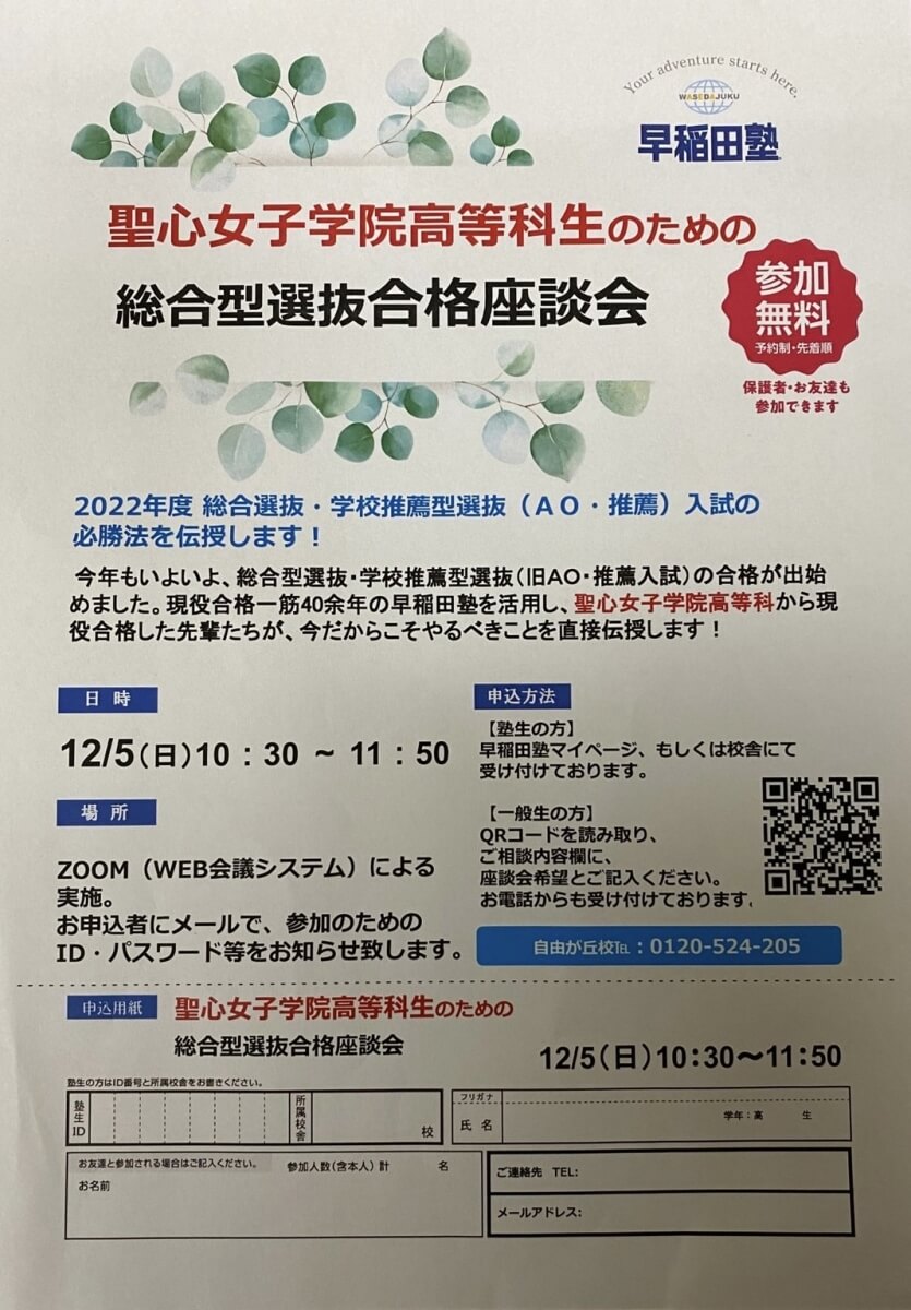 12/5(日)10:30~11:50に「聖心女子学院高等科生のための現役合格座談会」を開催します!