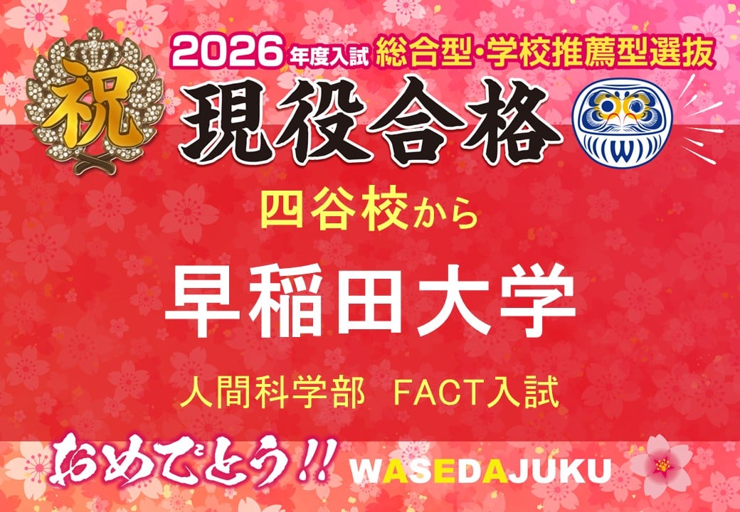早慶・国公立を中心に難関大学の合格実績を毎年数多く打ち立てているのが、この四谷校です。塾生の1~2割は帰国子女。さらに北は北海道から南は沖縄まで、塾生の出身地も全国規模。多様な価値観が融合し、グローバルな視点で進路を発見する土壌になっています。