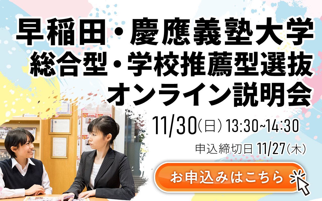 私大 総合型・学校推薦型選抜で合格実績No.1を誇る早稲田塾が、早慶の総合型選抜を徹底解説!実際に合格した先輩の事例なども交えながら、入試のポイントをお伝えします。