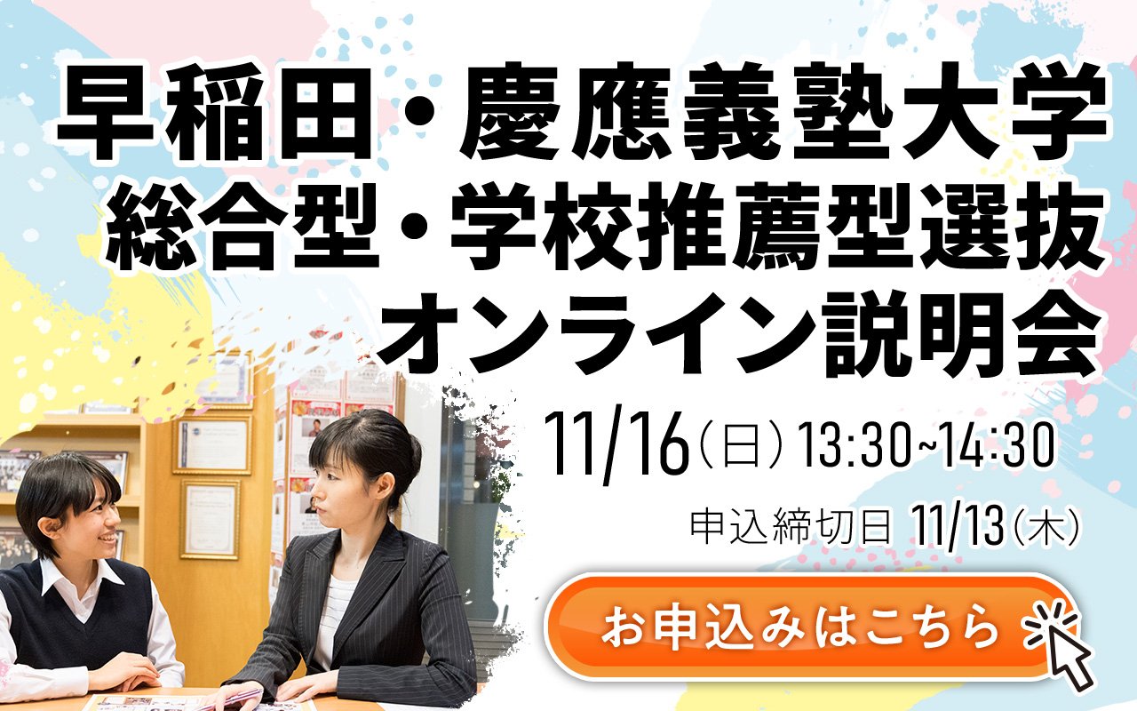 私大 総合型・学校推薦型選抜で合格実績No.1を誇る早稲田塾が、早慶の総合型選抜を徹底解説!実際に合格した先輩の事例なども交えながら、入試のポイントをお伝えします。