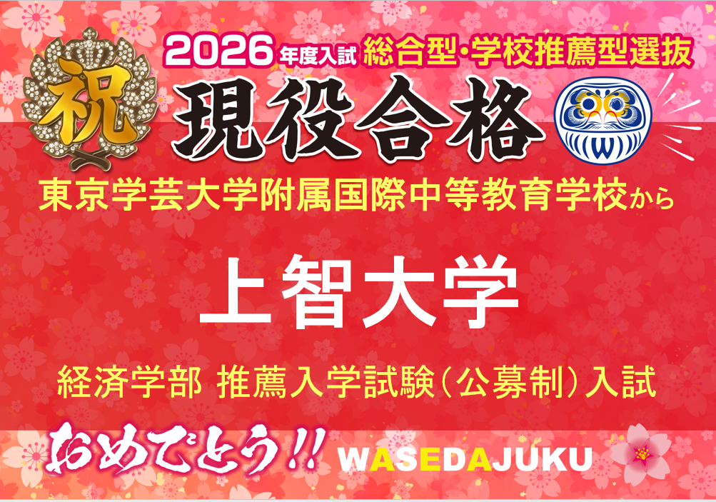 学習院高等科から、上智大学法学部に公募制入試で現役合格!