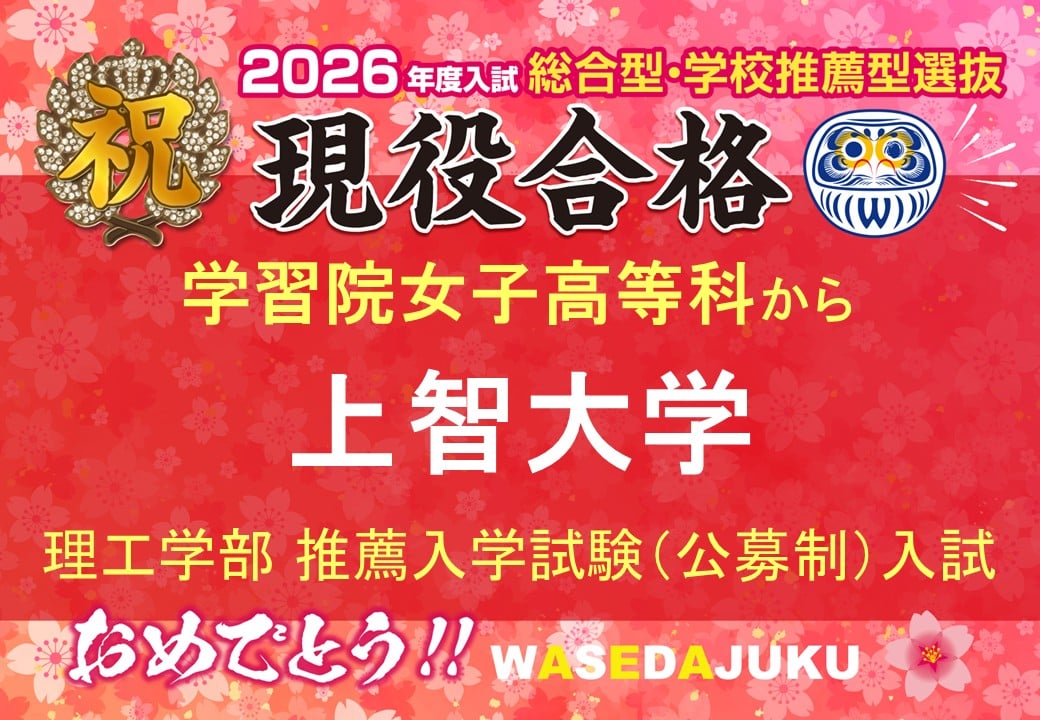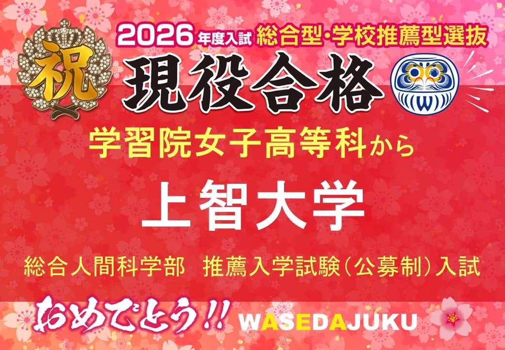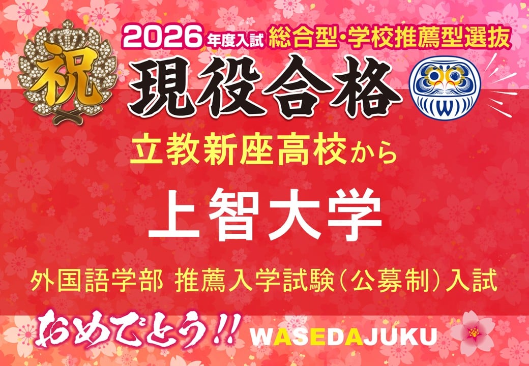 学習院高等科から、上智大学法学部に公募制入試で見事現役合格!