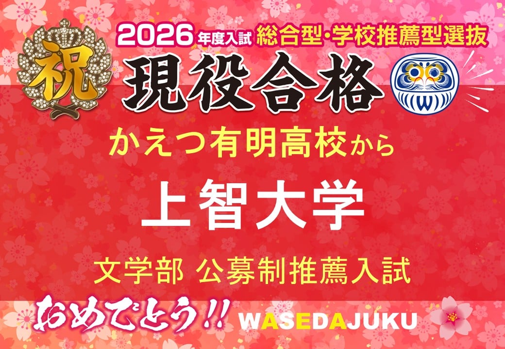 【2026年度入試 現高3生】かえつ有明高校から、上智大学グローバル地域文化学部グローバル地域文化学科に公募制推薦入試で現役合格!