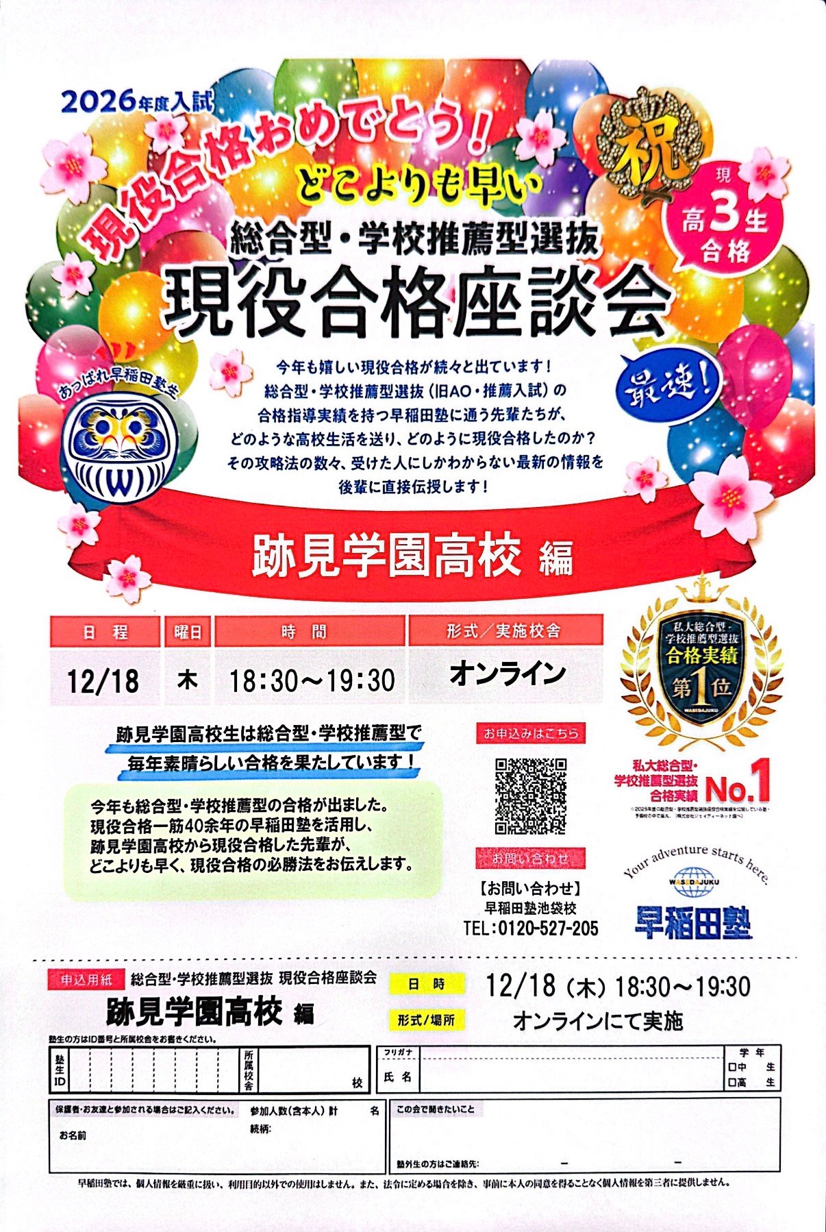 【大妻多摩高校生のための総合型・学校推薦型選抜攻略セミナー】 開催のお知らせ