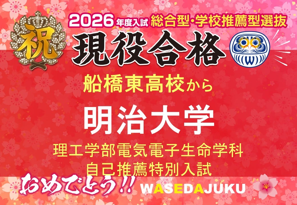 早稲田塾津田沼校より、現役合格速報です!船橋市立船橋高校から、中央大学文学部へ自己推薦特別入試で現役合格!