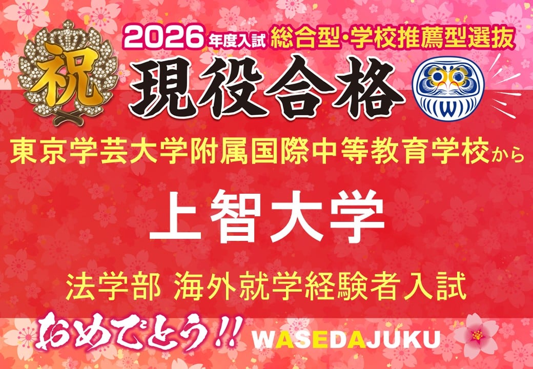 東京学芸大学附属国際中等教育学校から、上智大学に海外就学経験者入試で現役合格!