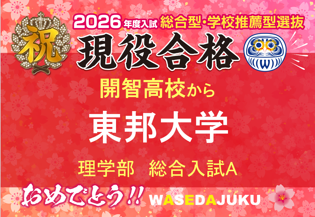 【2026年度入試 現高3生】開智高校から、東邦大学理学部へ総合入試Aで現役合格!