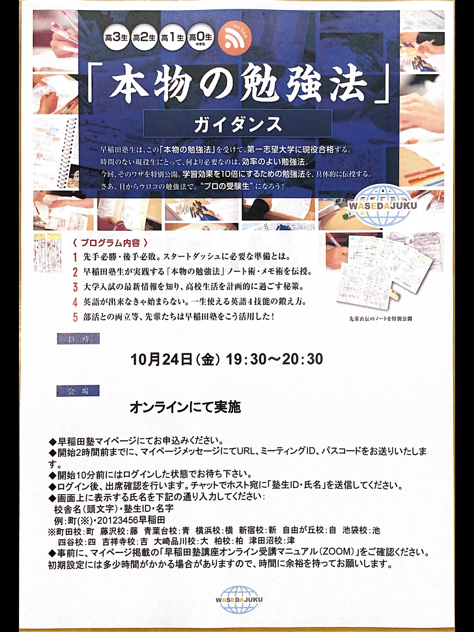 【全学年必見】「本物の勉強法ガイダンス」のお知らせ