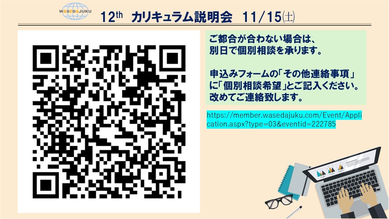 KL生専門クラスを担当して約20年の早稲田塾カリキュラムをお伝えしますので、ぜひご参加ください。
