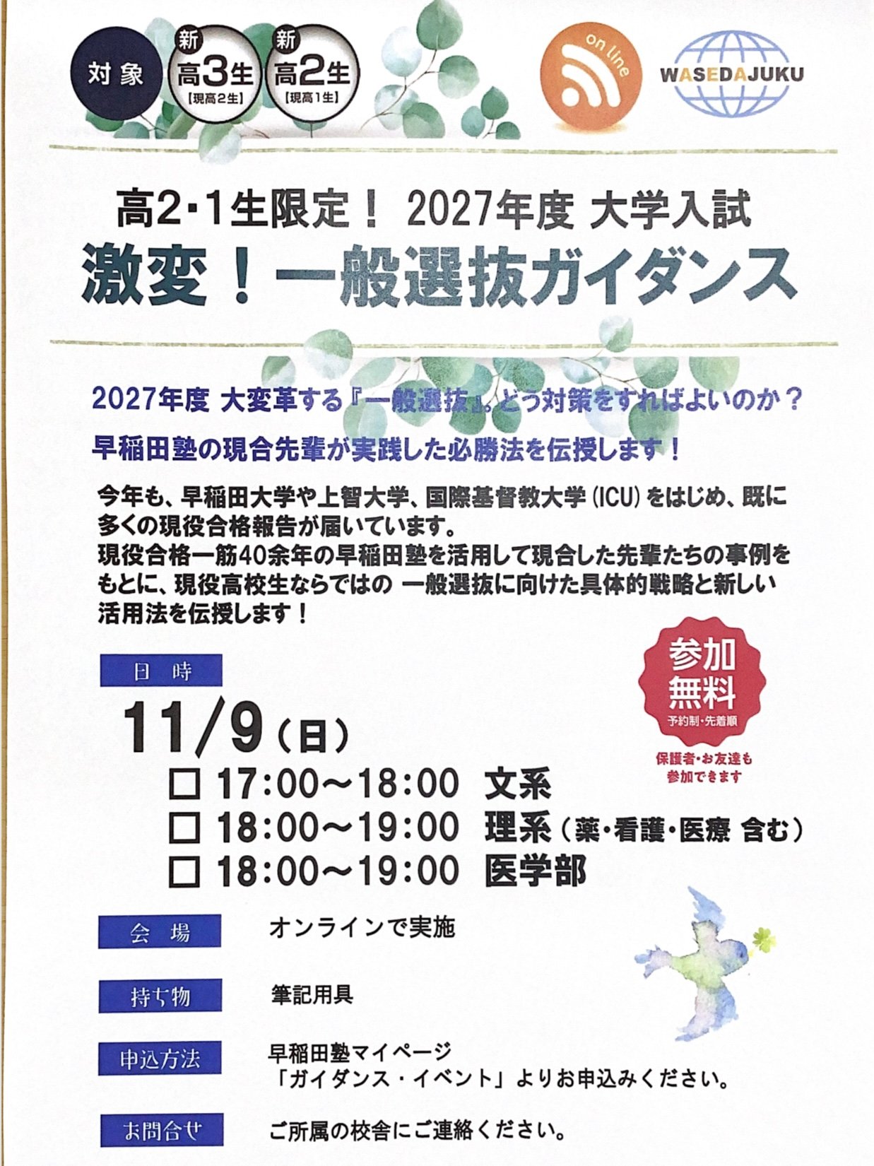 11/9(日)「激変!一般選抜ガイダンス」が開催されます!