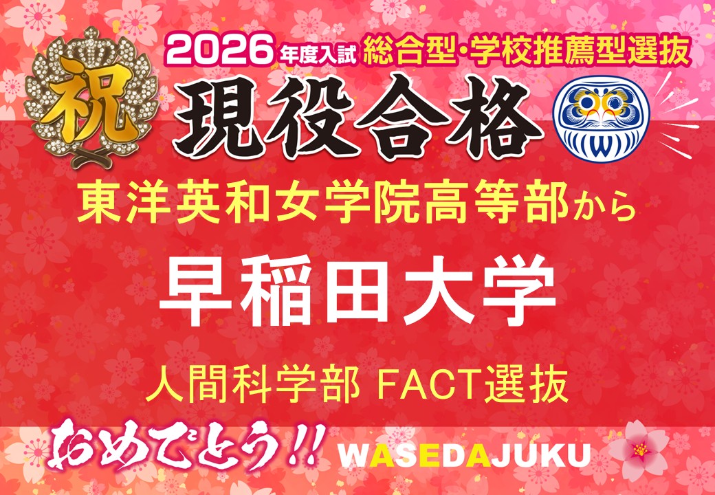 東洋英和女学院高等部から、早稲田大学にFACT選抜で現役合格!