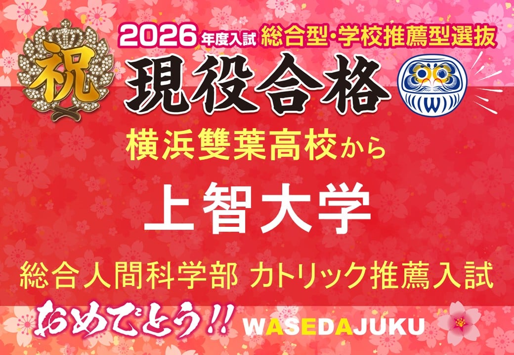 【2026年度入試 現高3生】横浜雙葉高校から、カトリック高等学校対象特別入学試験で上智大学総合人間科学部に見事現役合格!!