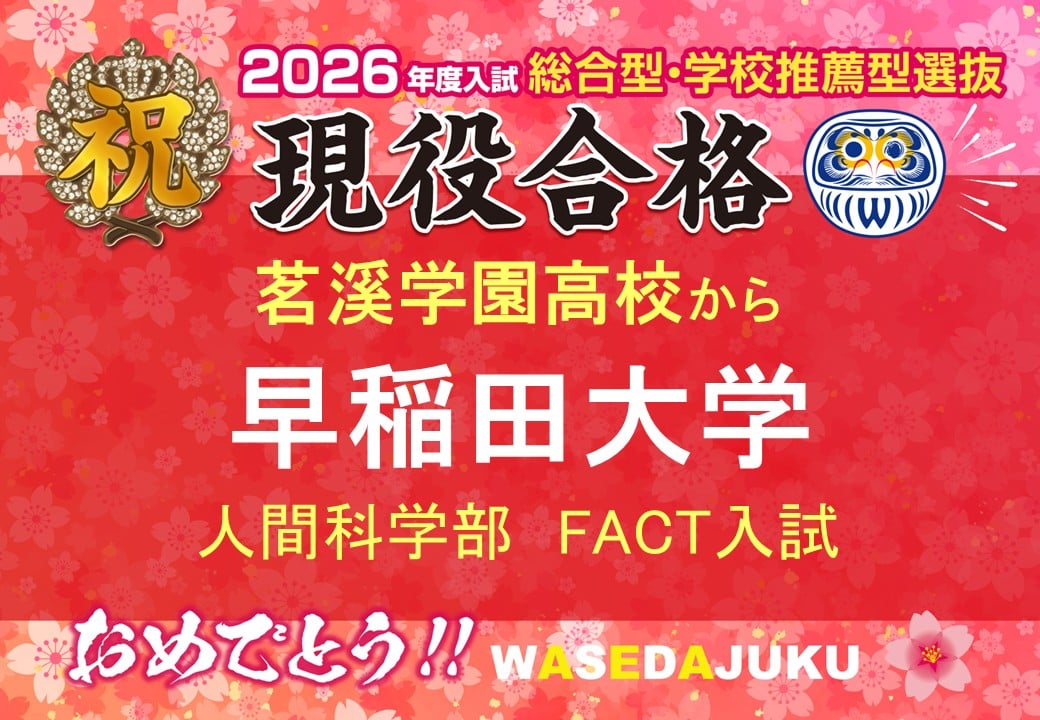 【2026年度入試 現高3生】茗溪学園高校から、早稲田大学 人間科学部 健康福祉科学科にFACT入試で現役合格!