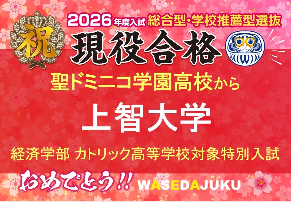 【2026年度入試 現高3生】聖ドミニコ学園高校から、上智大学 経済学部へカトリック高等学校対象特別入試で見事現役合格!