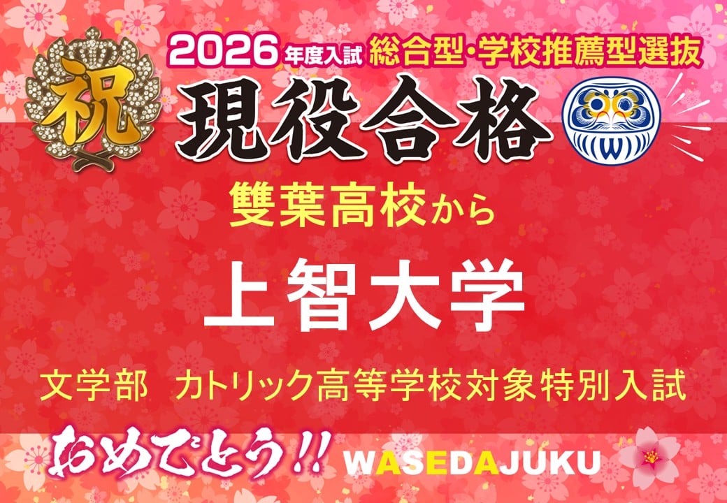 【2026年度入試現役合格速報】雙葉高校から、上智大学文学部にカトリック高等学校対象特別入試で現役合格!