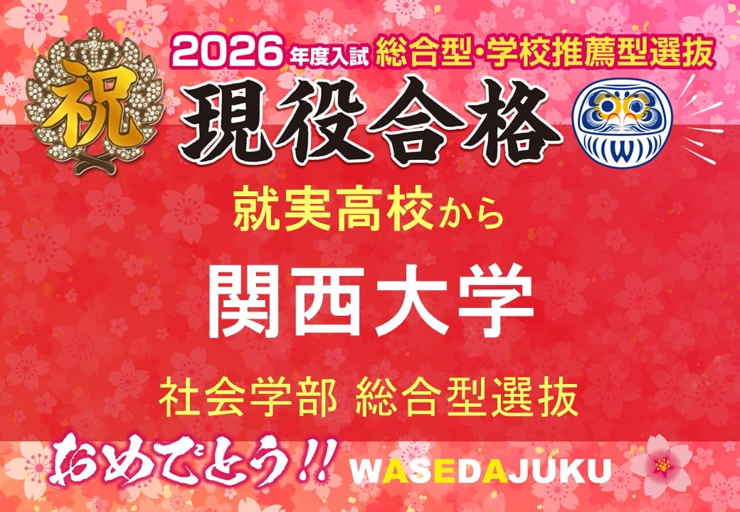 【2026年度入試 合格速報】就実高校から、関西大学社会学部に総合型選抜で現役合格!
