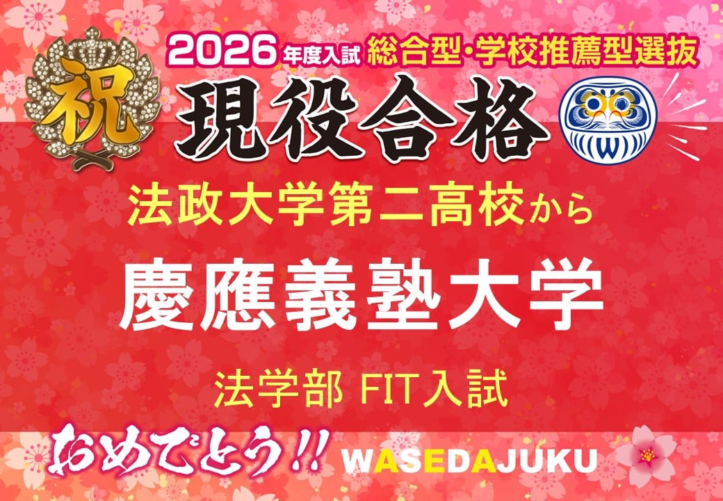 法政大学第二高校から、慶應義塾大学 法学部に、FIT入試で現役合格です!