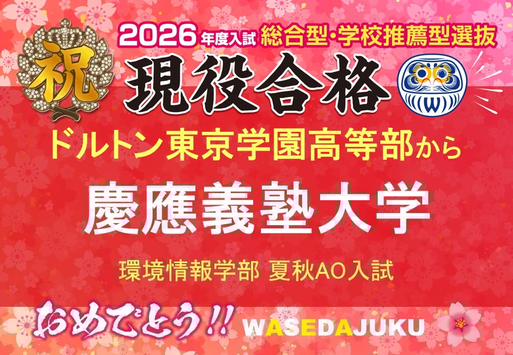 【2026年度入試 現高3生】ドルトン東京学園高等部から、慶應義塾大学 環境情報学部へ夏秋AO入試で見事現役合格!