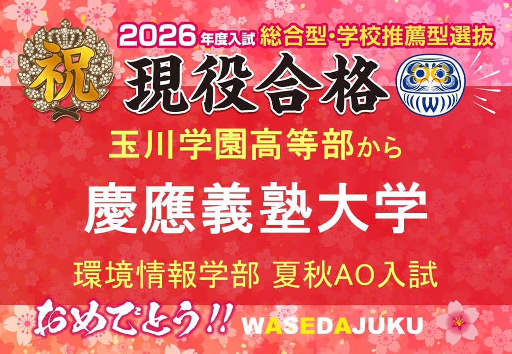 玉川学園高等部から、慶應義塾大学に夏秋AO入試で見事現役合格!