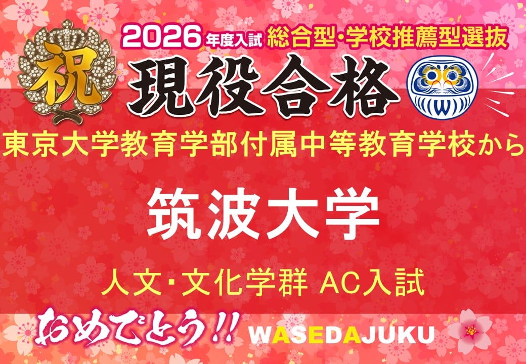 東京大学教育学部付属中等教育学校から、筑波大学にAC入試で現役合格!