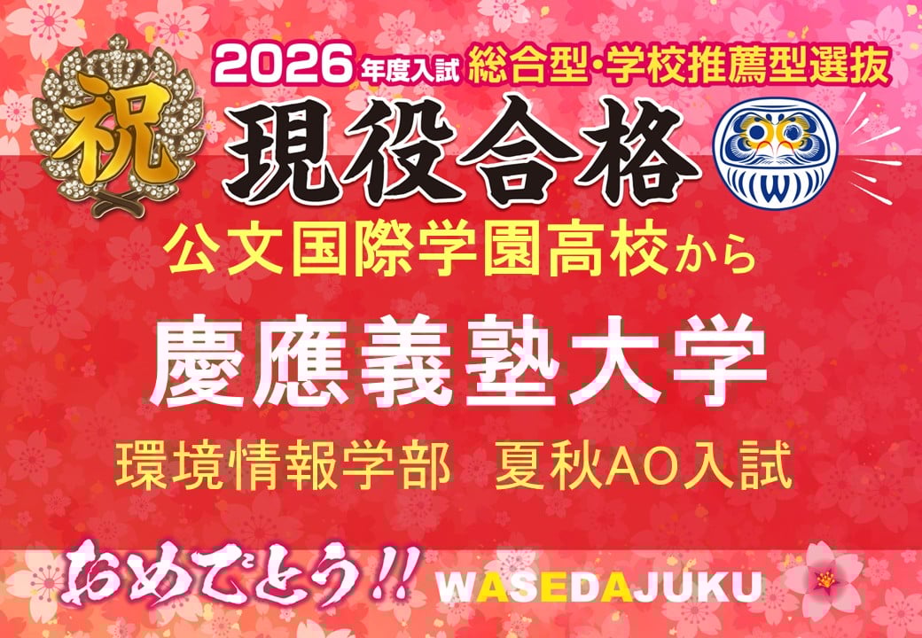 【2026年度入試 合格速報】公文国際学園高校から、慶應義塾大学環境情報学部に夏秋AO入試で現役合格!