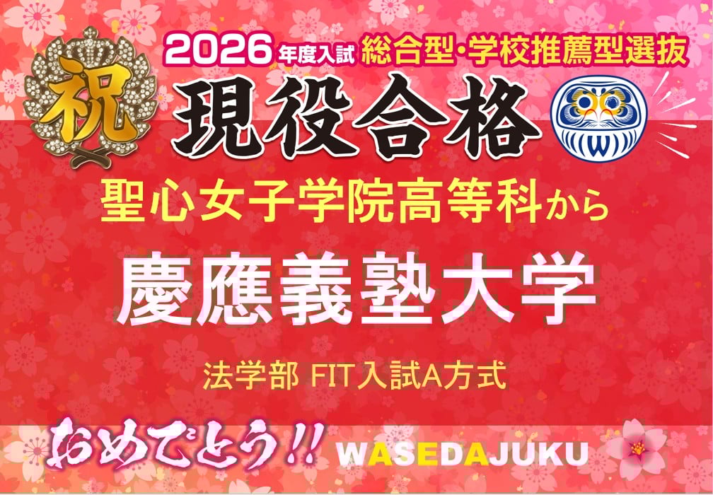 【2026年度入試 現高3生】聖心女子学院高等科から、慶應義塾大学 法学部へFIT入試A方式で見事現役合格!