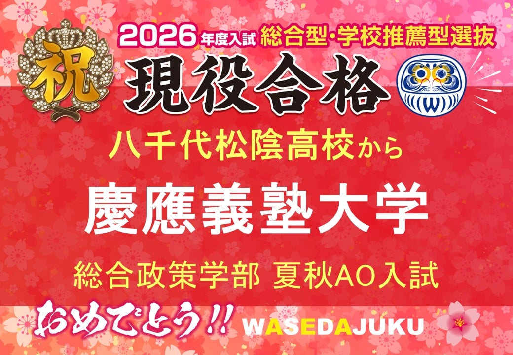 【2026年度入試 津田沼校現役合格速報】八千代松陰高校から、慶應義塾大学総合政策学部へ夏秋AOで現役合格!