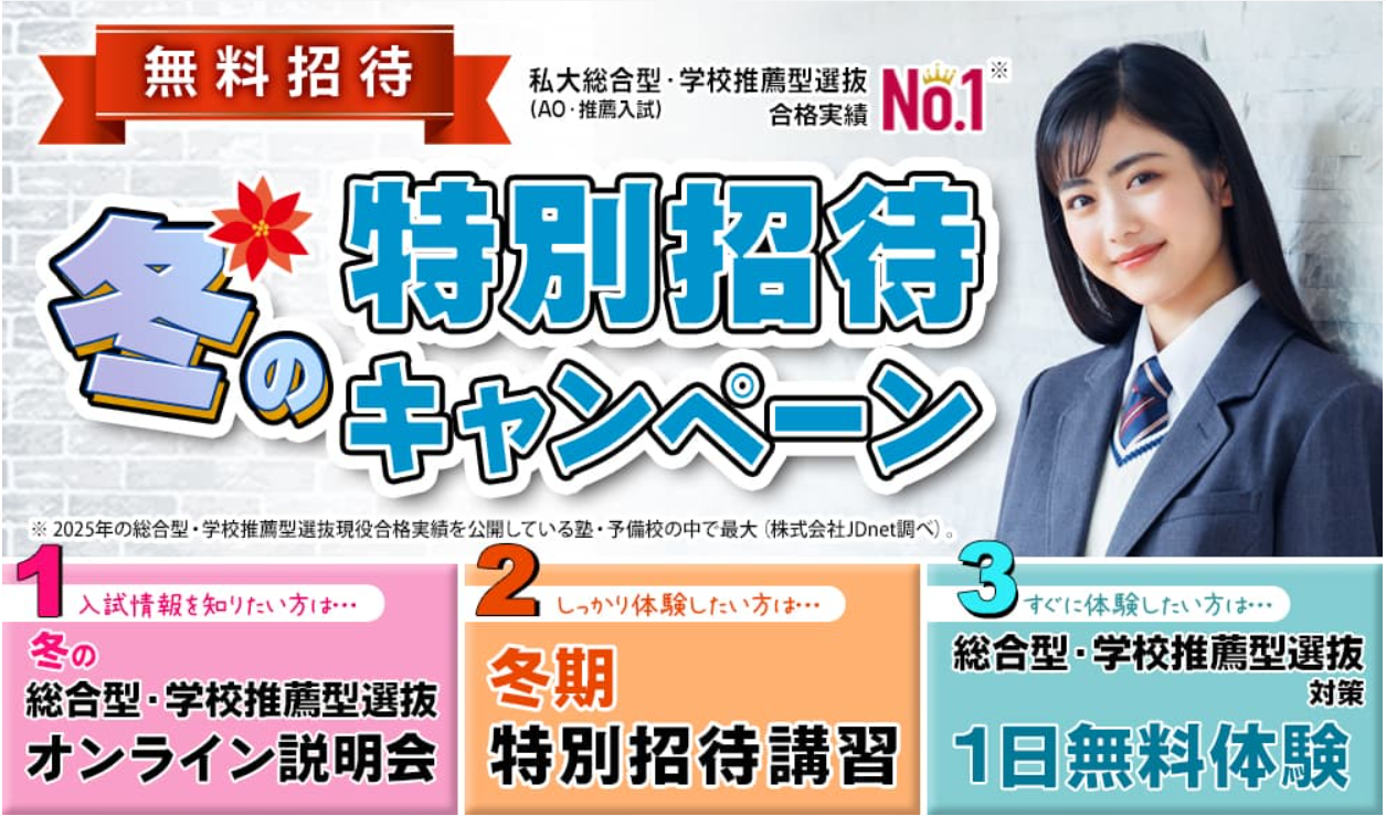 早稲田塾では現在、冬の特別招待キャンペーンを行っております。
