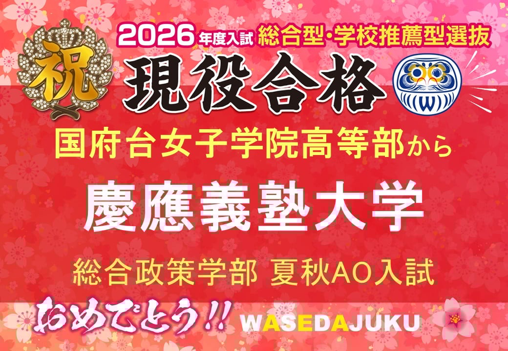 【2026年度入試 津田沼校現役合格速報】国府台女子学院高等部から、慶應義塾大学総合政策学部へ夏秋AOで現役合格!