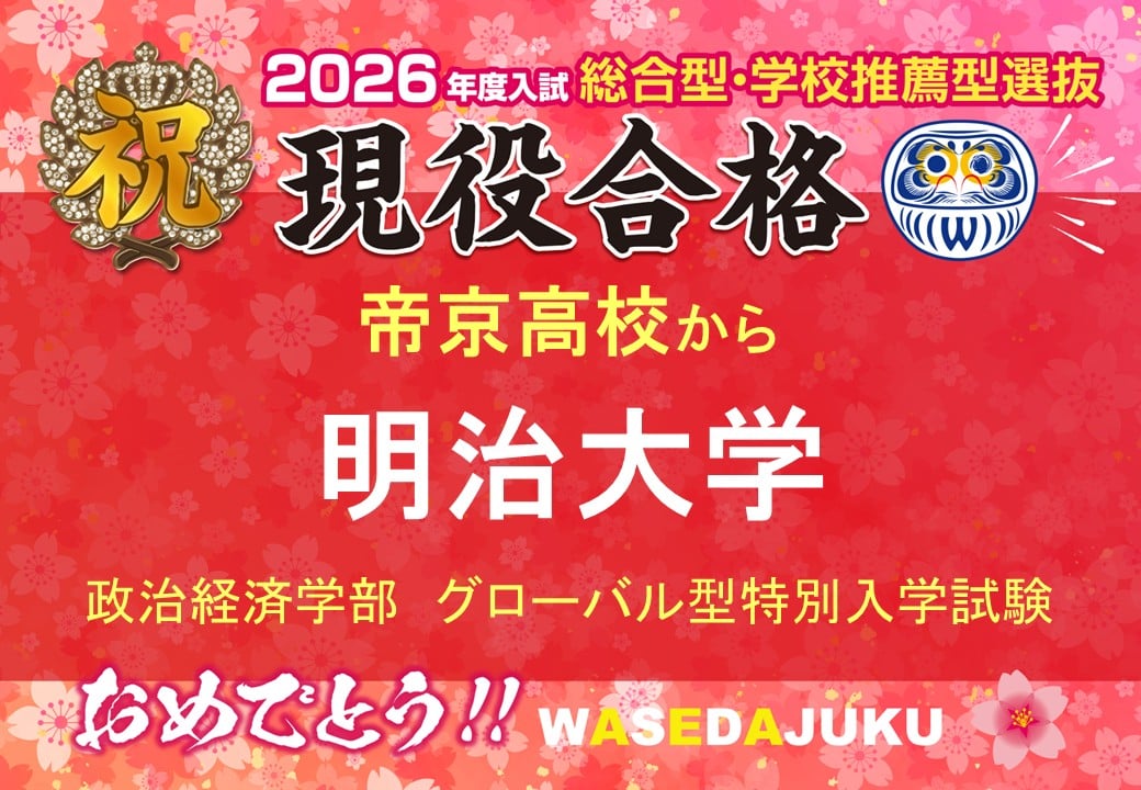 【2026年度入試 現高3生】帝京高校から、明治大学 政治経済学部 政策学科に グローバル型特別入学試験で現役合格!