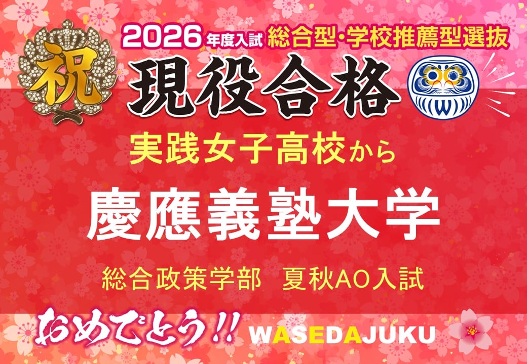 【2026年度入試現役合格速報】実践女子高校から、慶應義塾大学総合政策学部に夏秋AO入試で現役合格!