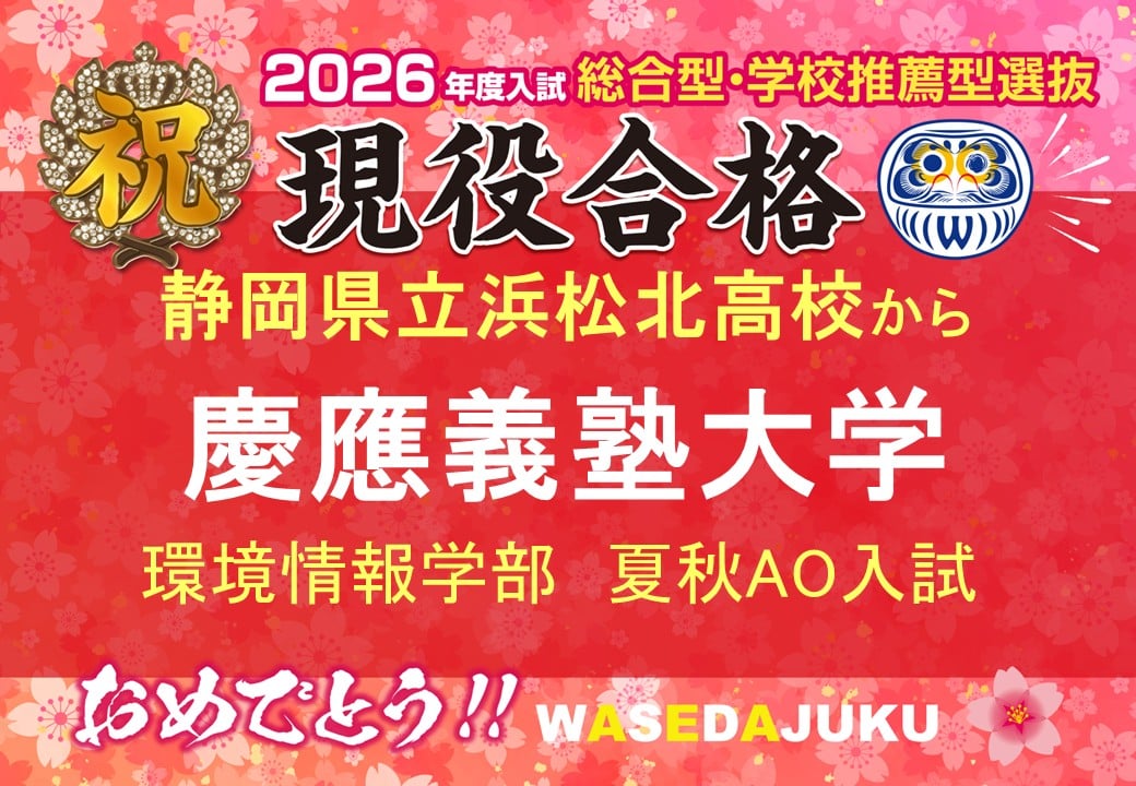 【2026年度入試 合格速報】静岡県立浜松北高等学校から、慶應義塾大学総合政策学部に夏秋AO入試で現役合格!