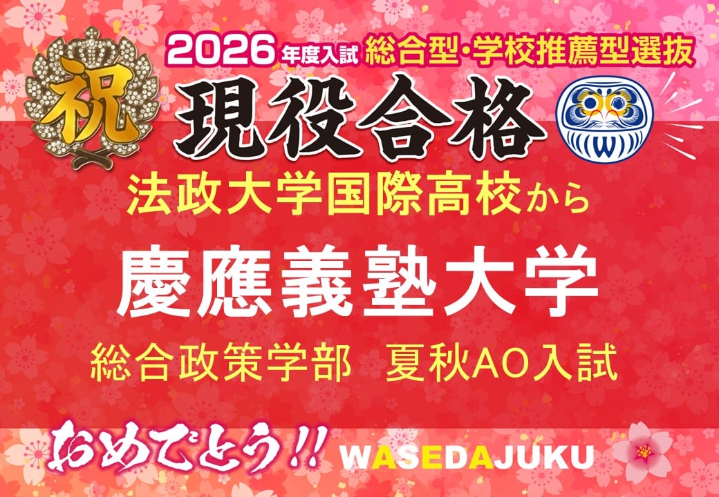 【2026年度入試 合格速報】法政大学国際高校から、慶應義塾大学総合政策学部に夏秋AO入試で現役合格!
