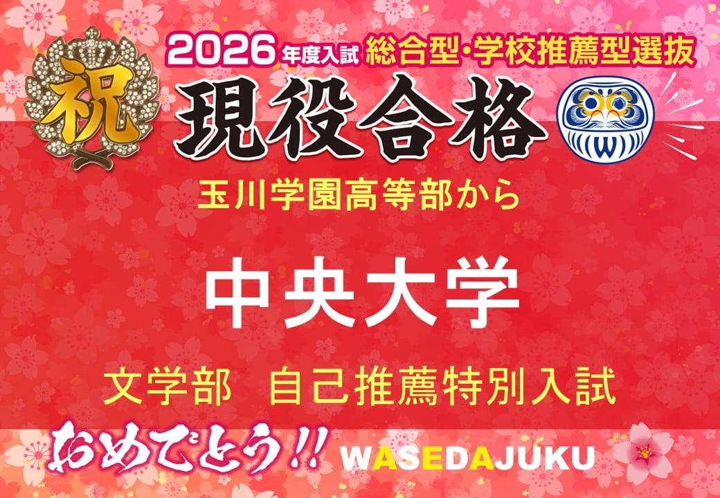 【合格速報】玉川学園高等部から中央大学文学部に自己推薦特別入試で現役合格です!
