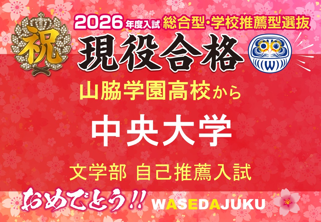 【2026年度入試 現高3生】山脇学園高校から、中央大学 文学部 人文社会学科に 自己推薦入試で現役合格!