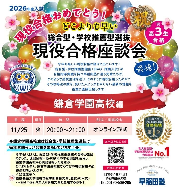 📣どこよりも早い総合型・学校推薦型選抜現役合格座談会~鎌倉学園高校編~のお知らせ📣