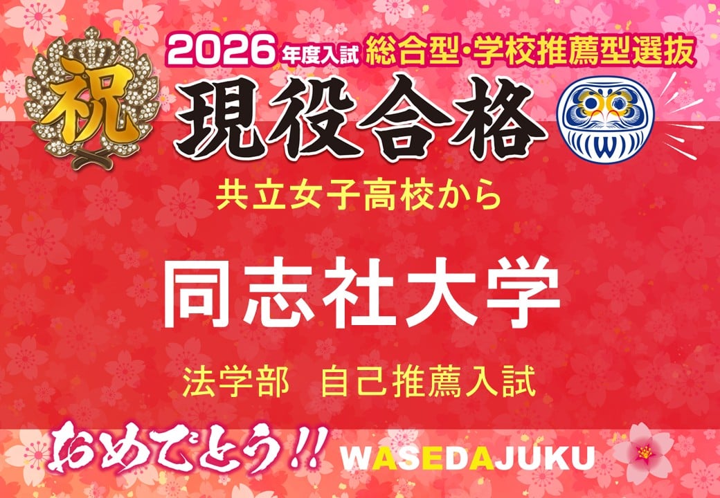 【2026年度入試 現高3生】共立女子高校から、同志社大学法学部に総合型選抜(自己推薦入学試験)で現役合格!