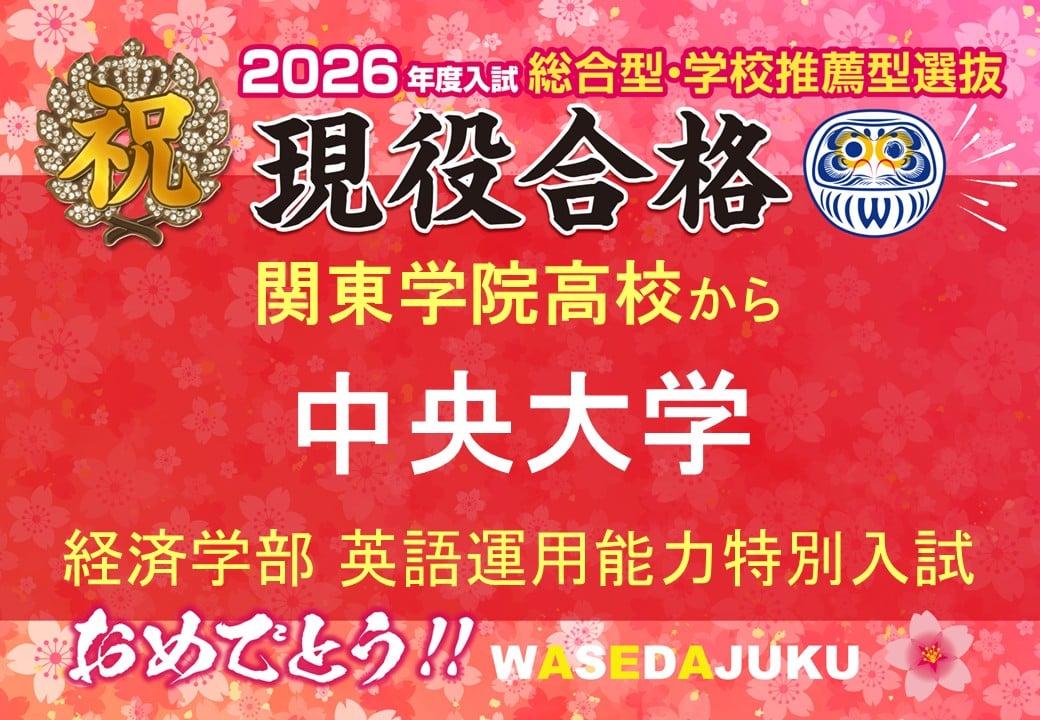 【2026年度入試 合格速報】関東学院高校から、中央大学経済学部に英語運用能力特別入試で現役合格!