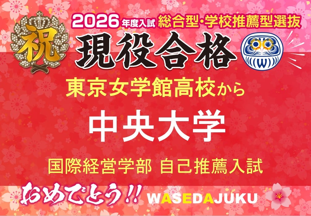 【2026年度入試 現高3生】東京女学館高校から、中央大学 国際経営学部へ自己推薦入試で見事現役合格!