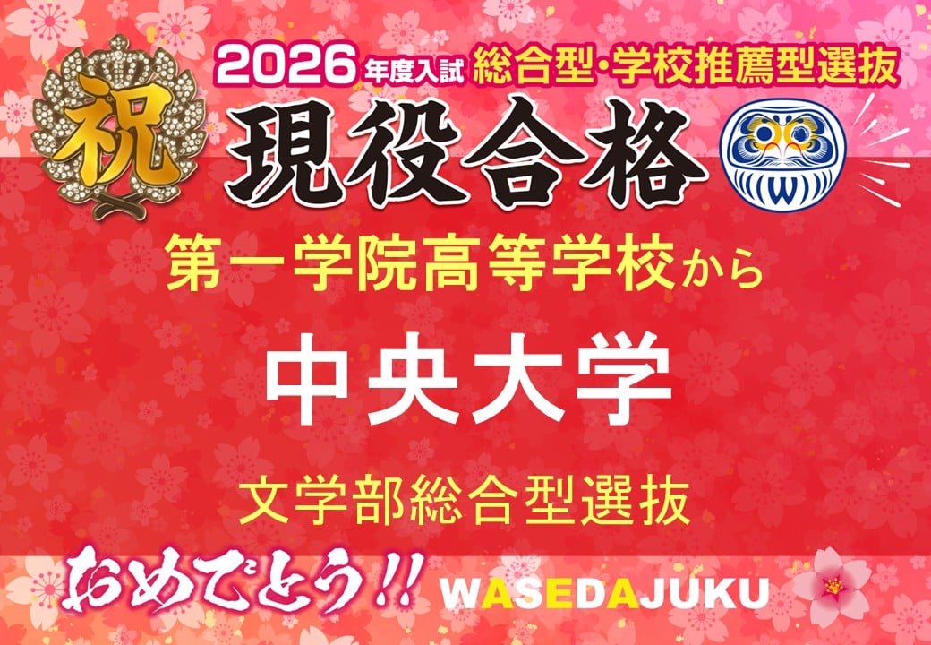 【2026年度入試 現高3生】第一学院高等学校から、中央大学文学部へ総合型選抜で現役合格!