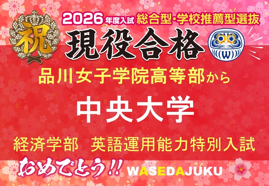 【2026年度入試 現高3生】品川女子学院高等部から、中央大学経済学部へ英語能力運用能力入試で現役合格!