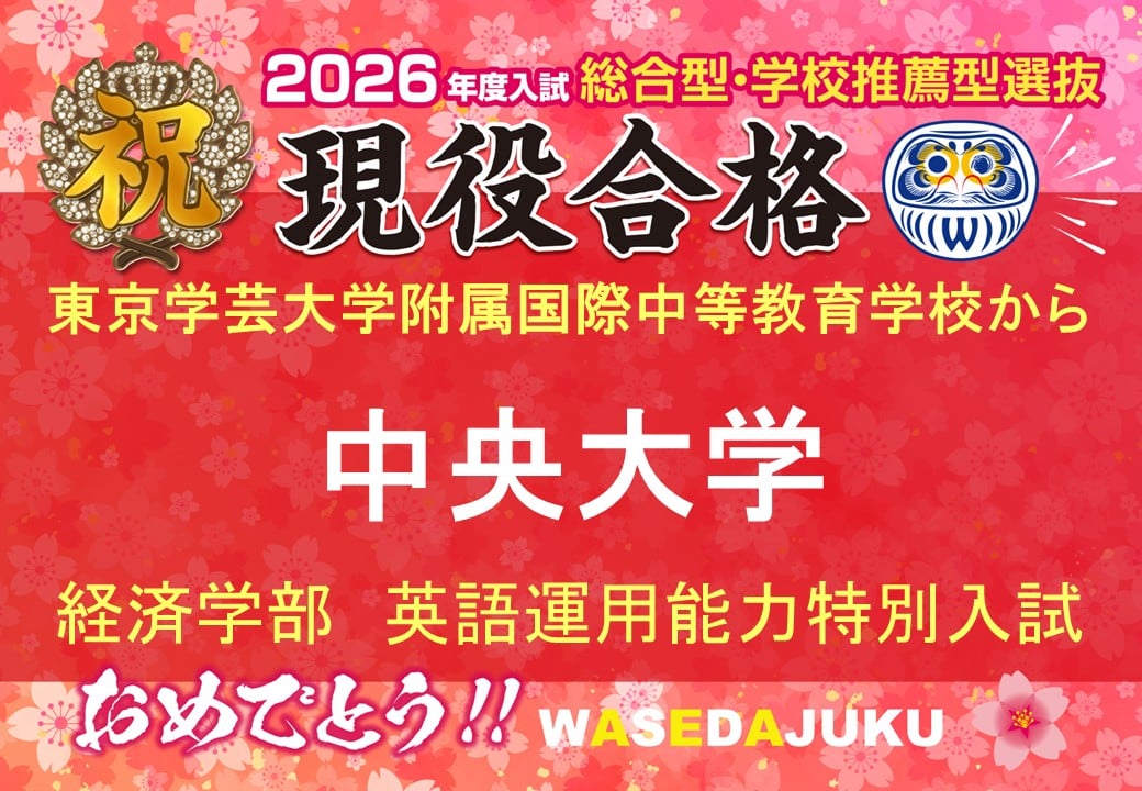 【2026年度入試 現高3生】東京学芸大学附属国際中等教育学校から、中央大学経済学部へ英語運用能力特別入試で現役合格!
