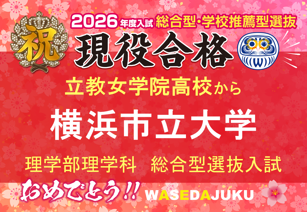 【2026年度入試 現高3生】立教女学院高校から、横浜市立大学理学部理学科に総合型選抜入試で現役合格!
