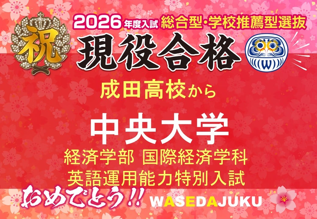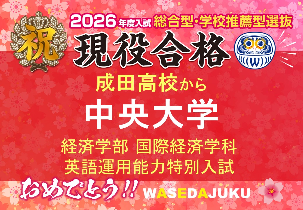 【2026年度入試 津田沼校現役合格速報】成田高校から、中央大学経済学部へ英語運用能力特別入試で現役合格!