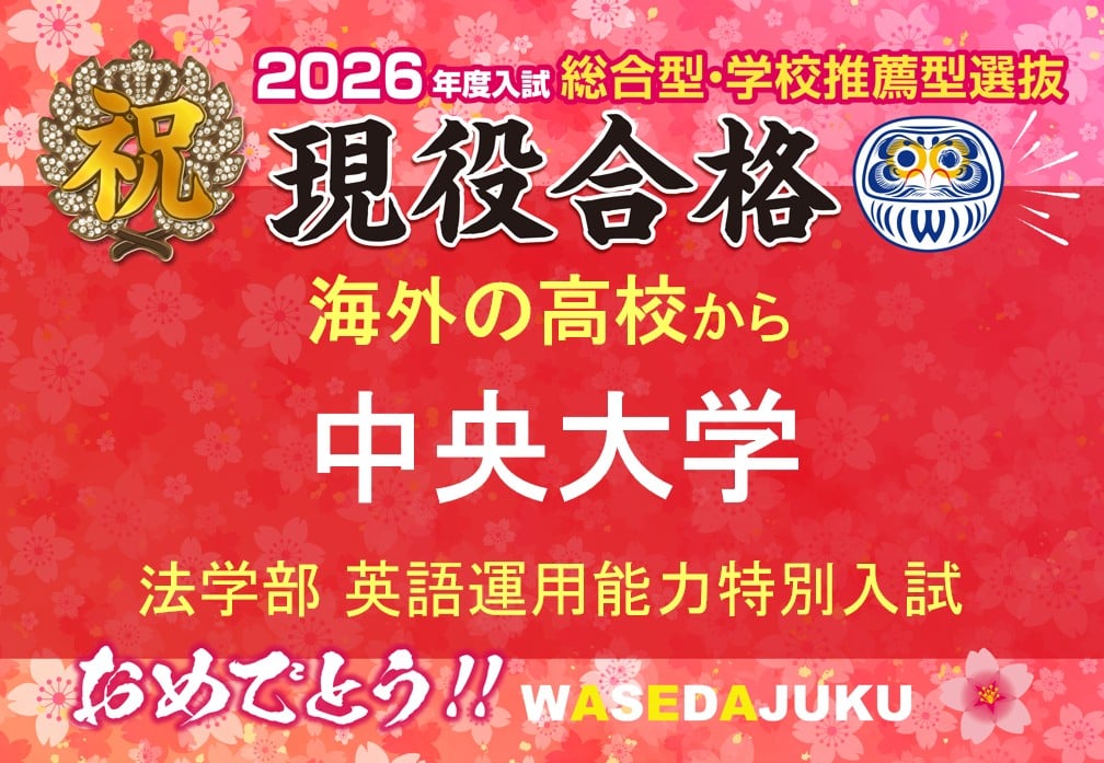 【2026年度入試 現高3生】海外の高校から、中央大学 法学部へ英語運用能力特別入試で見事現役合格!