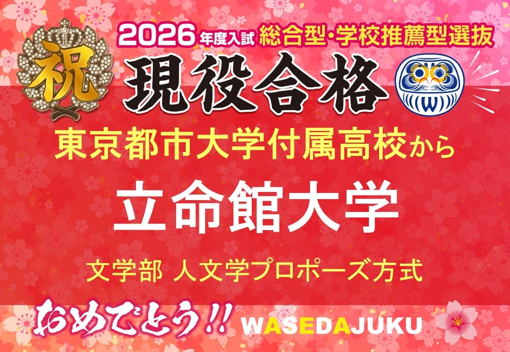 【2026年度入試 現高3生】東京都市大学付属高校から、立命館大学文学部へ人文学プロポーズ方式で合格!