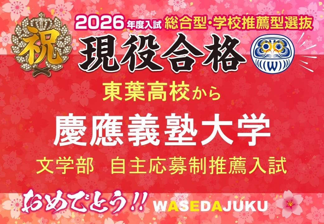 【2026年度入試 現高3生】東葉高校から、慶應義塾大学 文学部 人文社会学科に自主応募制推薦入試で現役合格!